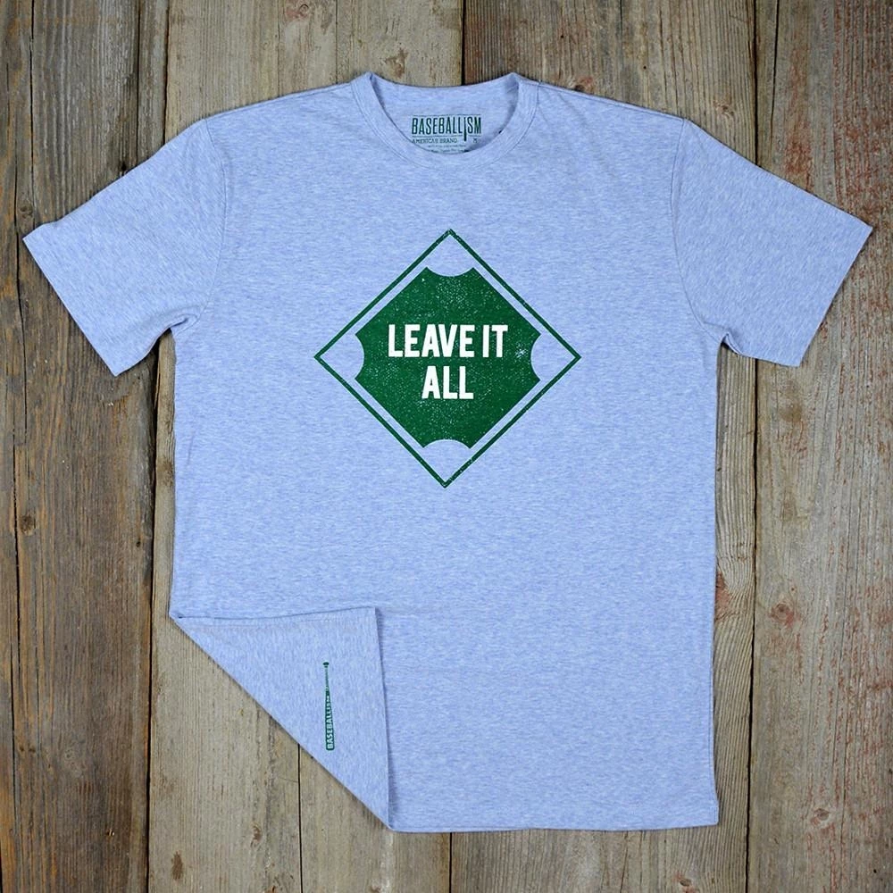 – Vintage Baseballism bat screened on back right of the garment