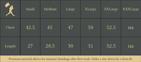 | Men's Sizes | Small, Medium, Large, X-Large, XX-Large, XXX-Large |
