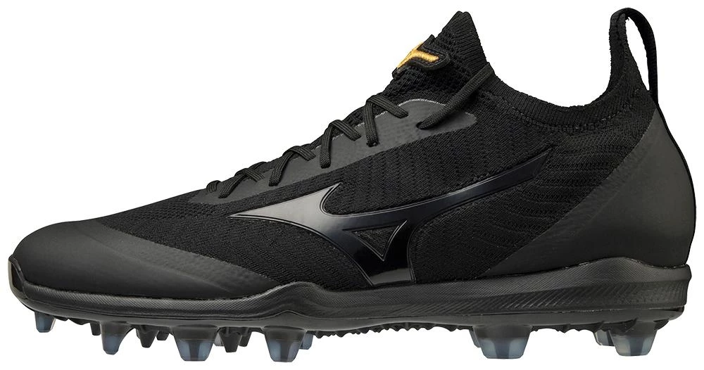 The Mizuno Pro Dominant TPU Knit features a groundbreaking full knit upper. An all-black, tone-on-tone design is an incredibly sleek look that also provides a natural, comfortable fit for all foot types.